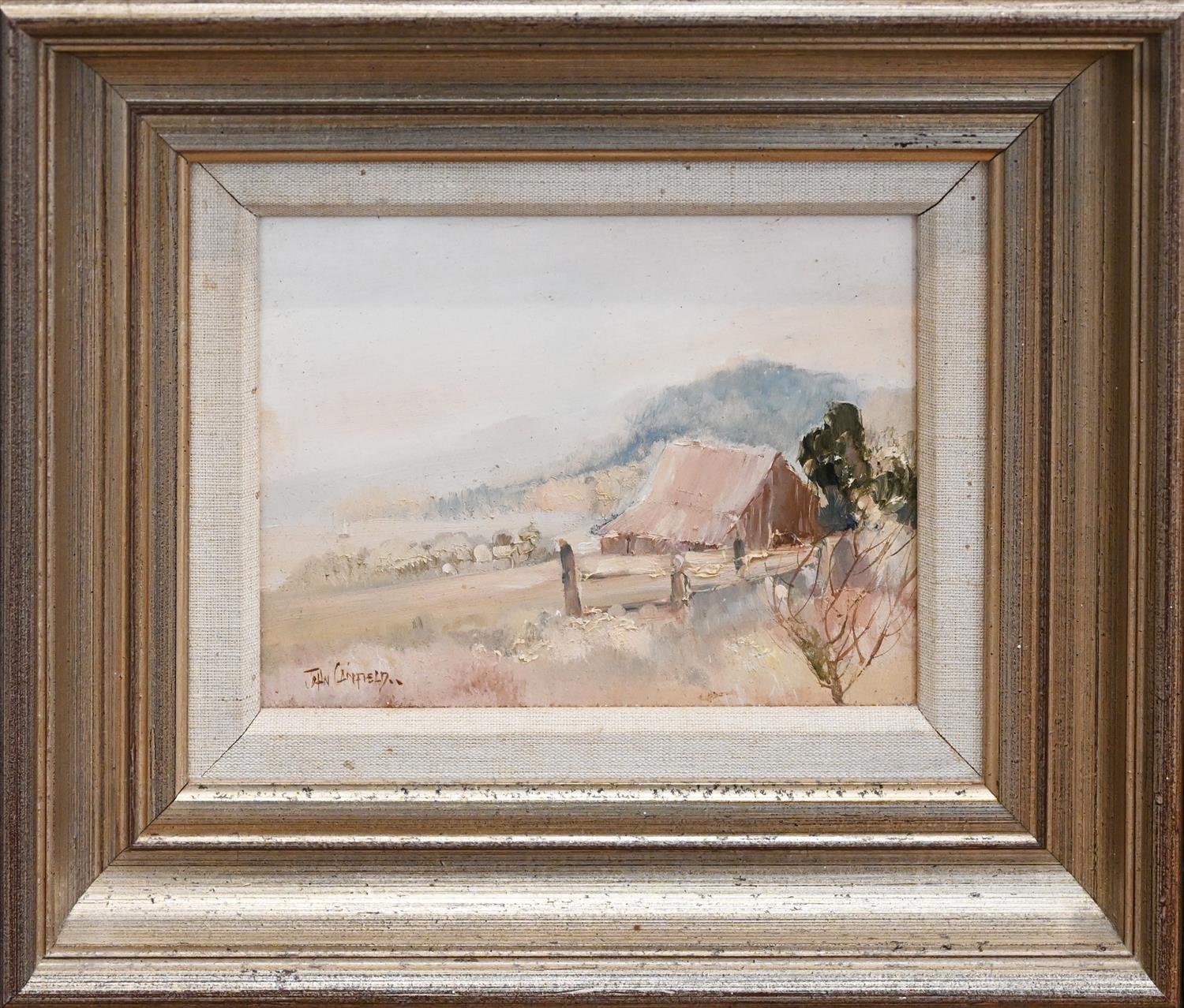 JOHN CANFIELD, SUMMER LANDSCAPE, OIL ON BOARD, 14 X 18.5CM