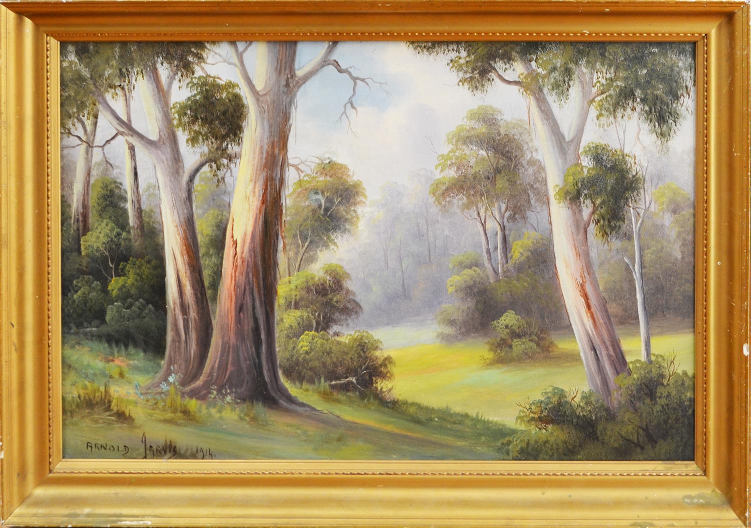 ARNOLD JARVIS, LANDSCAPE WITH TREES, OIL ON CANVAS, 50 X 75CM, FRAME SIZE 61 X 87.5CM