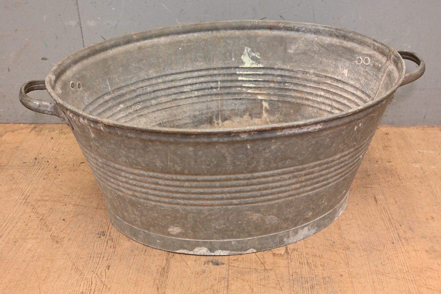 A LARGE FRENCH OVAL TWO HANDLED GALVANISED IRON BATH (31H X 76W X 52D CM) (LEONARD JOEL DELIVERY SIZE: LARGE)