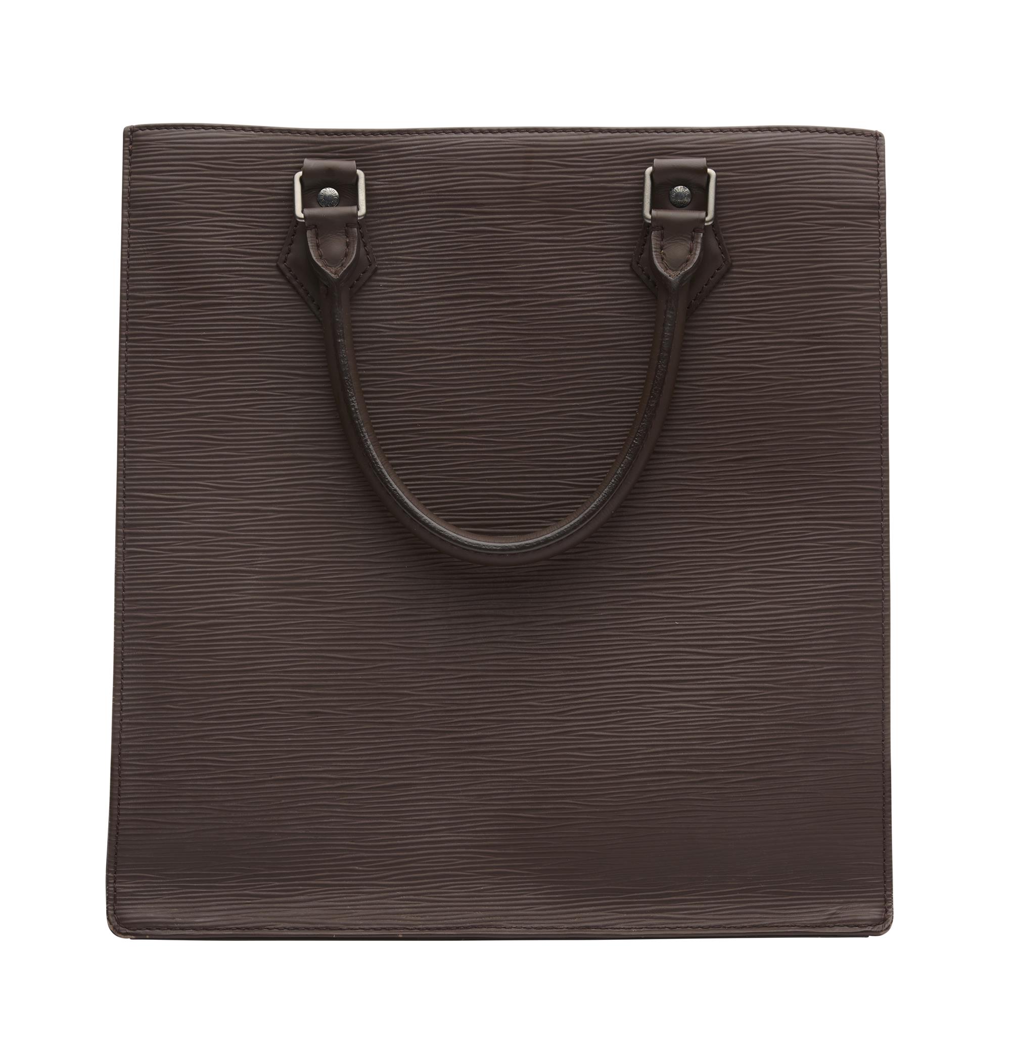 Styled in Mocha brown Epi leather with silver tone metal hardware, 27 x 30 x 8.5cm.