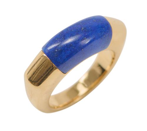Centring a panel of lapis lazuli, signed Cartier Paris and numbered 029781, size J, accompanied by a fitted Cartier box.
