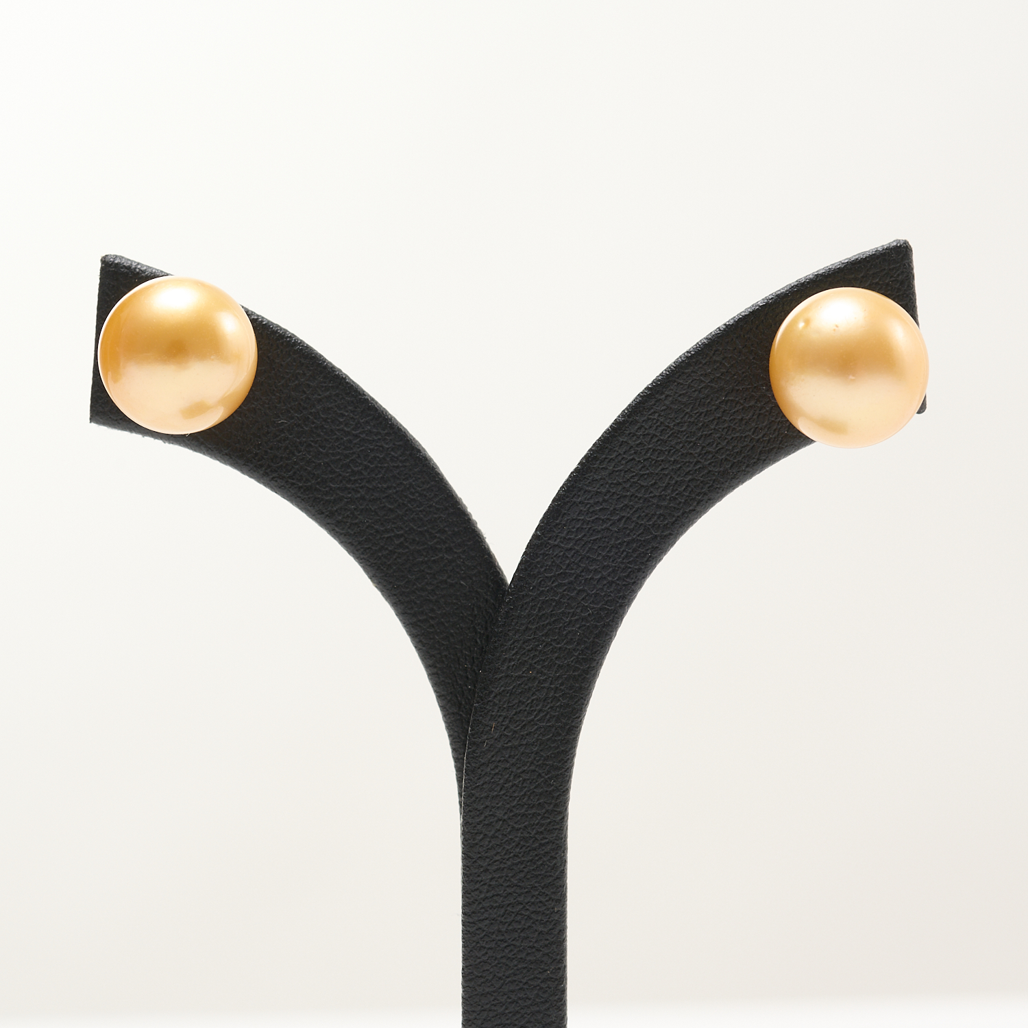 A PAIR OF GOLDEN SOUTH SEA PEARL EARRINGS MEASURING 10.5-11MM, IN 18CT GOLD, TO POST AND BUTTERFLY FITTINGS
