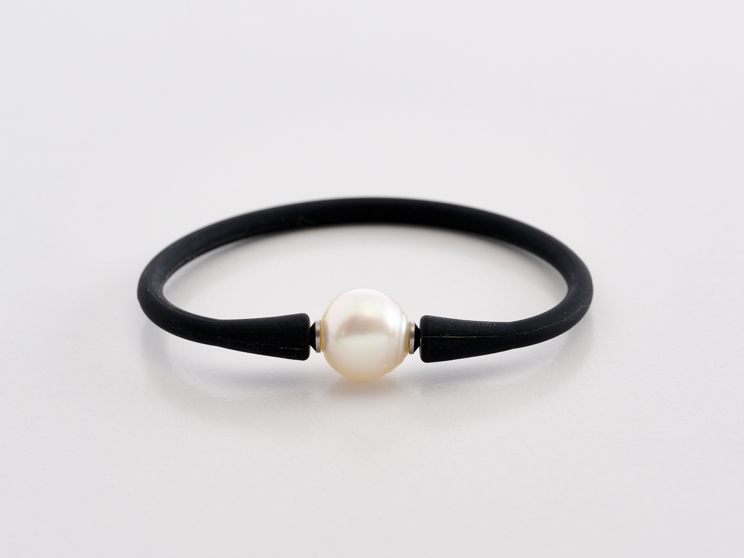 AN AUSTRALIAN SOUTH SEA PEARL AND NEOPRENE BRACELET, THE PEARL MEASURING 13.9MM