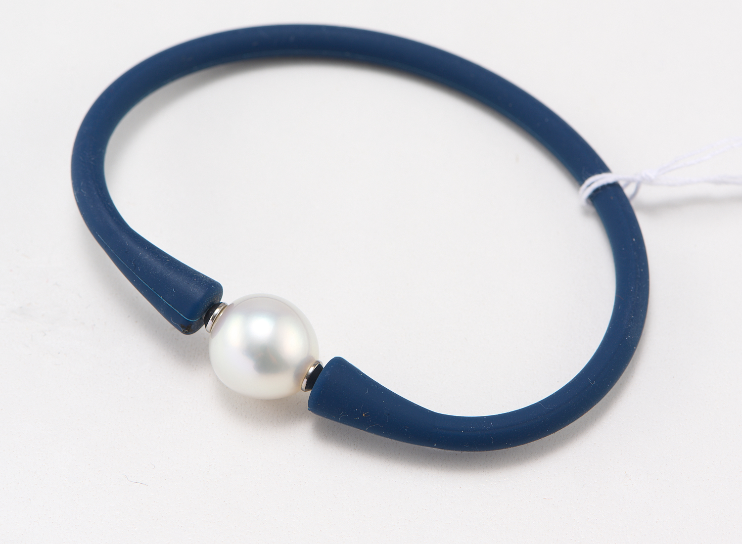 AN AUSTRALIAN SOUTH SEA PEARL AND NEOPRENE BRACELET, THE PEARL MEASURING APPROXIMATELY 11.97MM