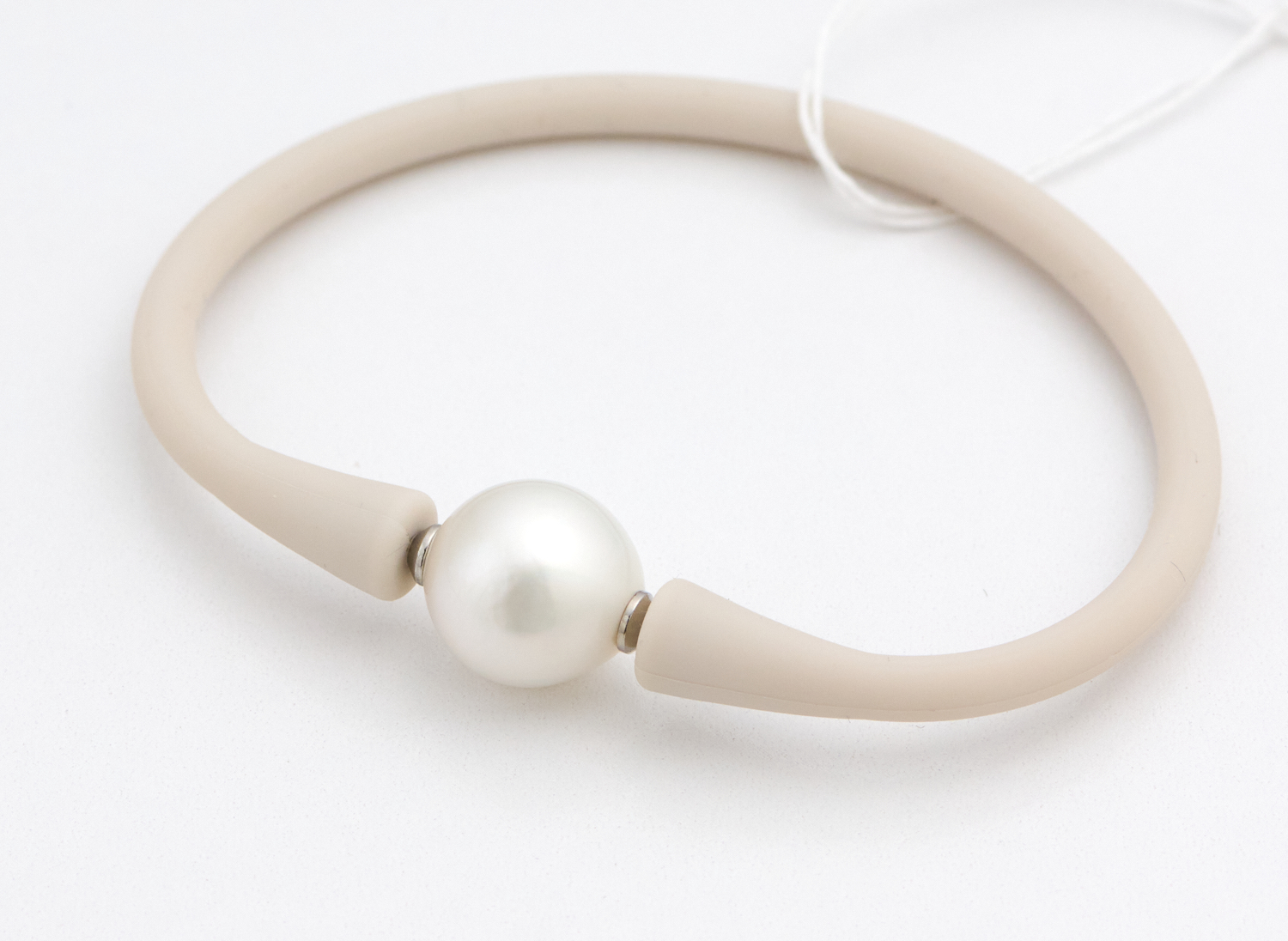 AN AUSTRALIAN SOUTH SEA PEARL AND NEOPRENE BRACELET, LENGTH 190MM, THE PEARL DIAMETER 13MM