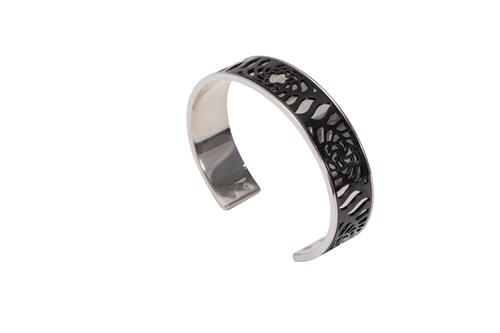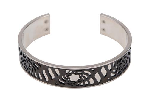 Styled in stainless steel with rhodium openwork overlay, made in Germany, width 15mm, size 60 x 50mm.