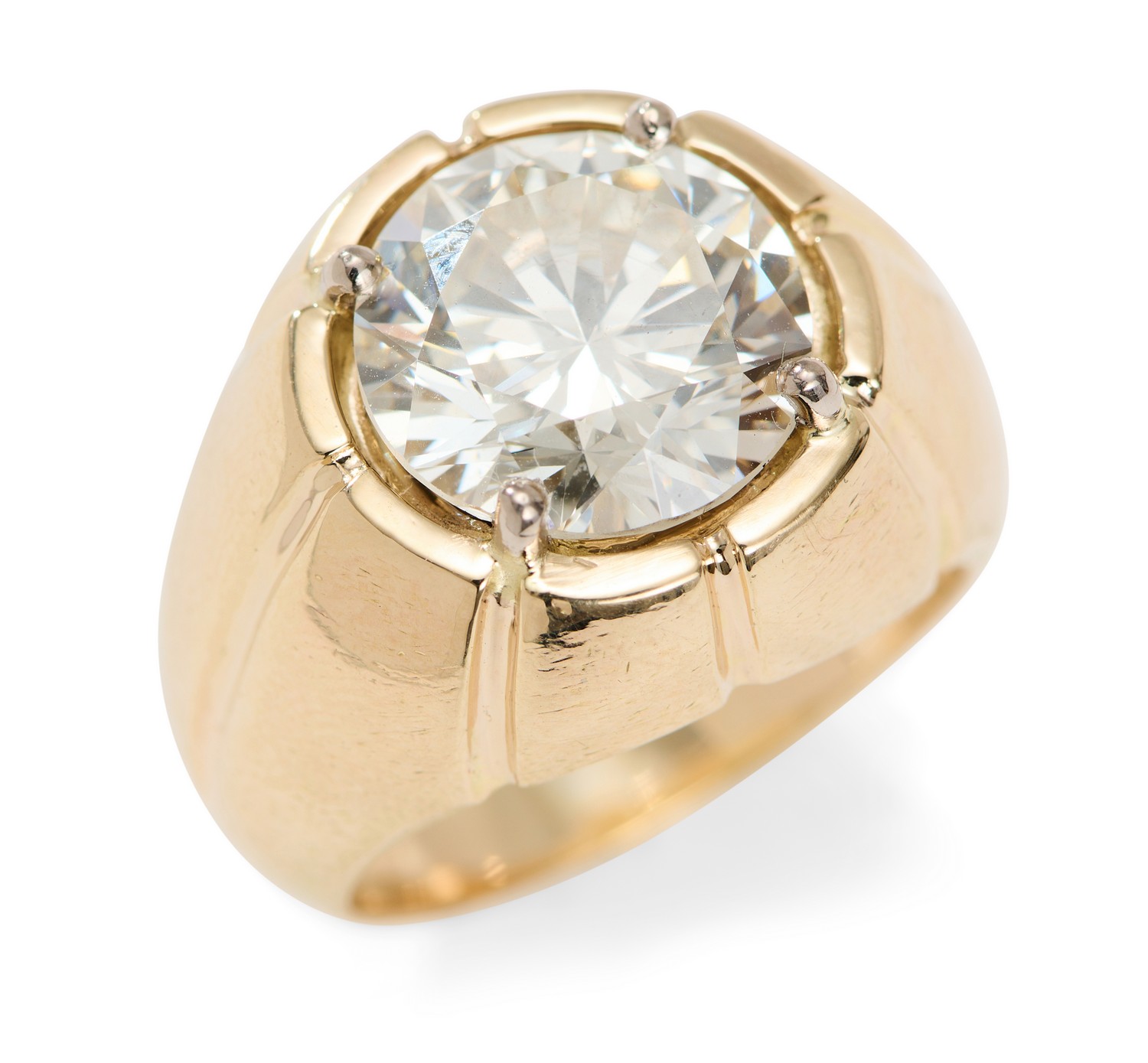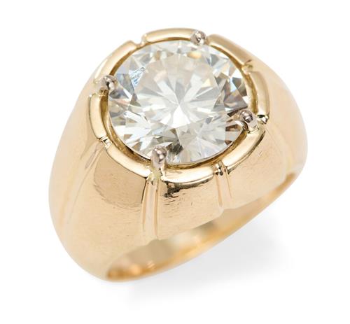 Claw-set with a brilliant-cut diamond weighing 6.29 carats, mounted in 14ct gold.