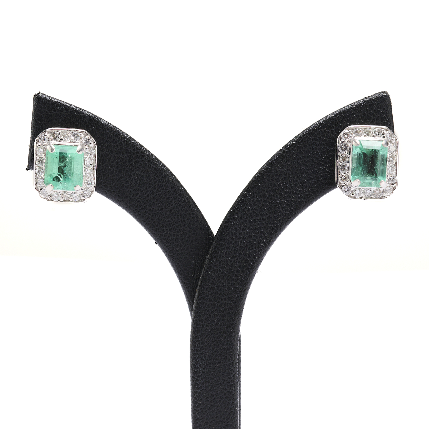 A PAIR DIAMOND EARRINGS IN 18CT WHITE GOLD, EACH EARRING CENTRING A PRINCESS-CUT DIAMOND WEIGHING APPROXIMATELY 1.04 CARATS, WITHIN...