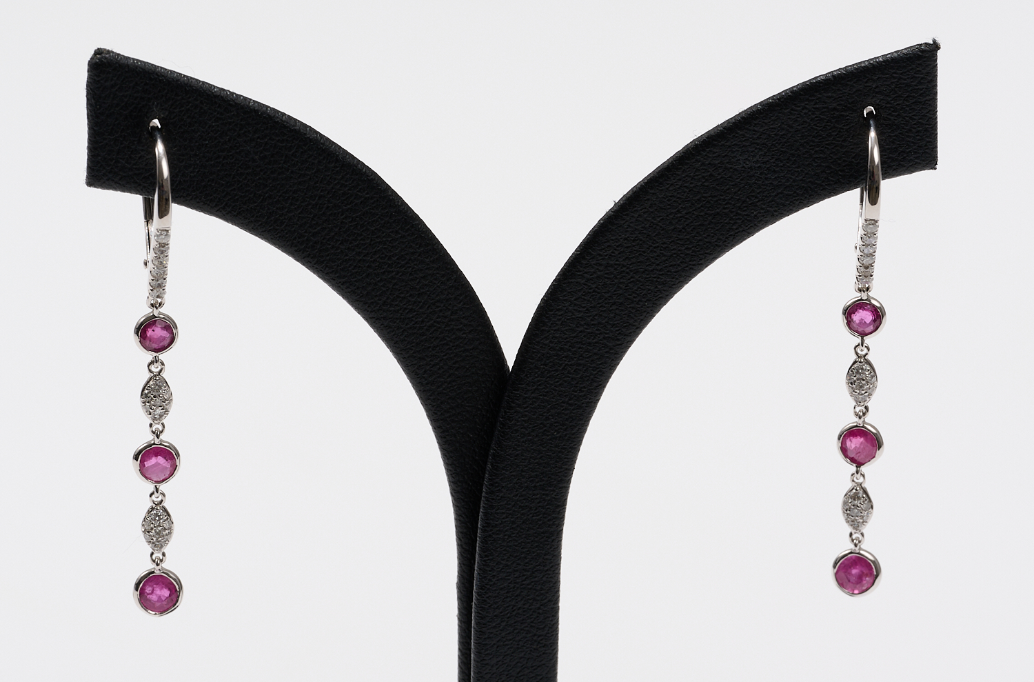 A PAIR DIAMOND EARRINGS IN 18CT WHITE GOLD, EACH EARRING CENTRING A PRINCESS-CUT DIAMOND WEIGHING APPROXIMATELY 1.04 CARATS, WITHIN...