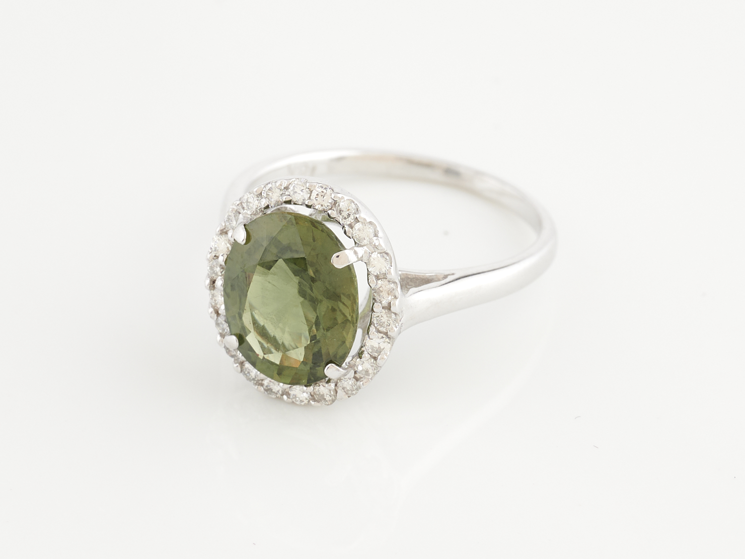 A SAPPHIRE AND DIAMOND RING IN 18CT WHITE GOLD, RING SIZE M, THE SAPPHIRE TOTALLING 8.70CTS, THE DIAMONDS TOTALLING 1.25CTS, ACCOMPA...