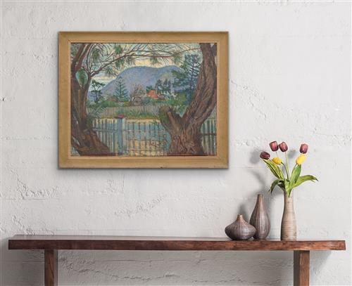 Work requires the attention of a conservator. Moisture damage evident from the back, with signs on the front that it has penetrated the artist's board. Framed, with overall size: 72 x 89cm