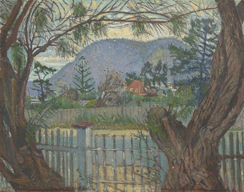 CLARICE BECKETT (1887-1935) Studley Park Footbridge c.1924 oil on board