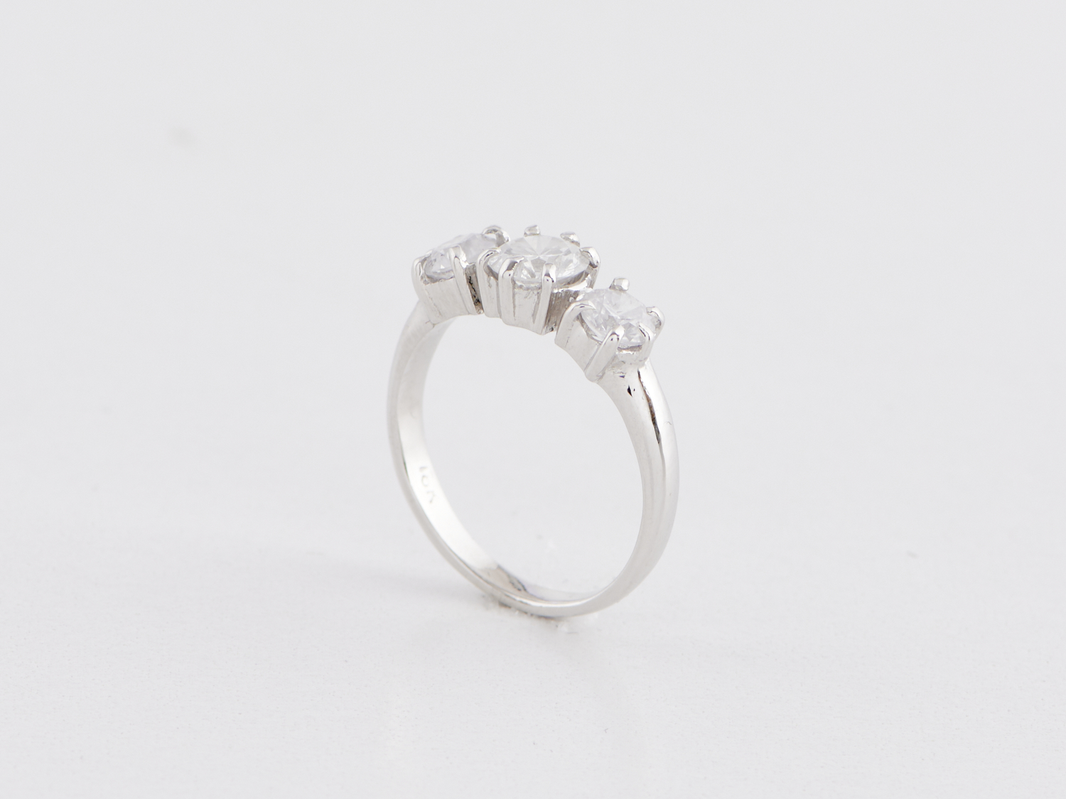A THREE STONE DIAMOND RING IN 18CT WHITE GOLD, THE DIAMONDS TOTALLING APPROXIMATELY 1.33CTS, RING SIZE M, WEIGHT 3.38GMS