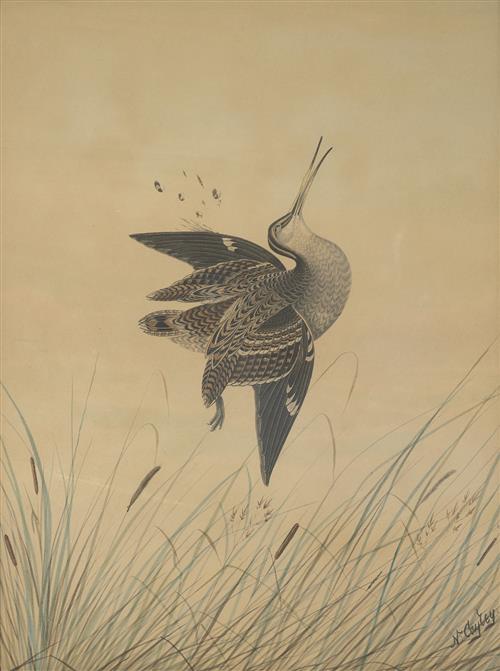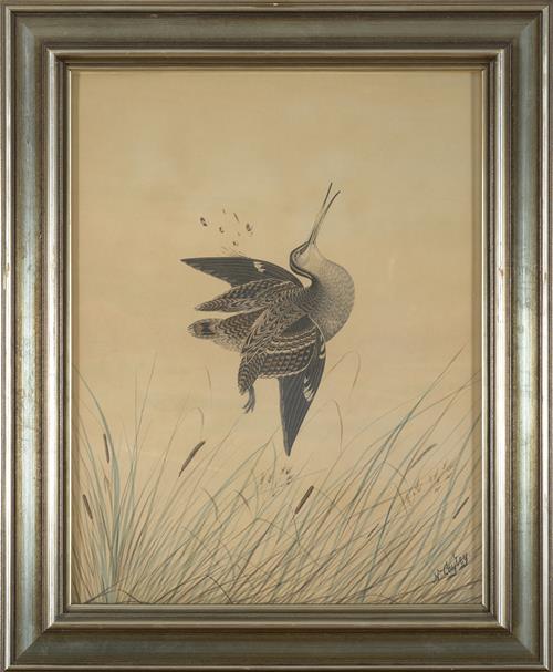 Work is in good condition and consistent with age, paper has faded but no other faults to report. The verso is sealed, please contact the Art Department for further details. There are some minor chips seen to the frame, overall size measuring 70.5 x 58cm.
