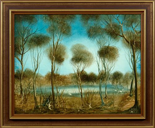 CLARICE BECKETT (1887-1935) Studley Park Footbridge c.1924 oil on board