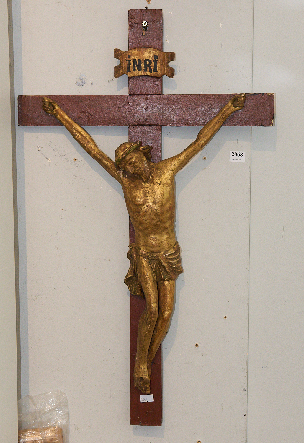 AN ANTIQUE GILDED AND POLYCHROME CRUCIFIX H.67CM, LEONARD JOEL LOCAL DELIVERY: MEDIUM