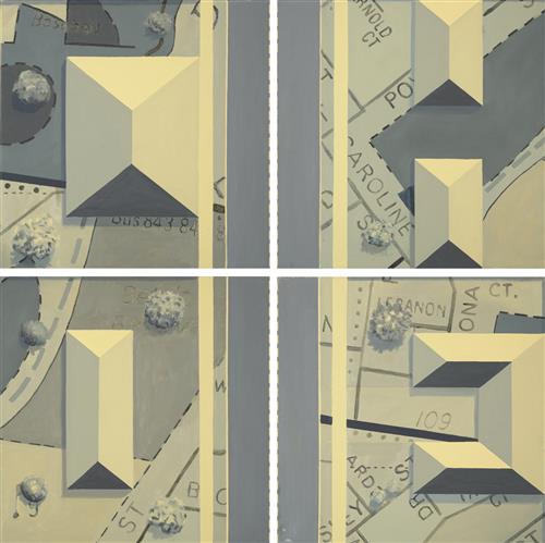 Work is in good condition, there is wear and tear seen to the edges of the canvas. There is paintloss and scuffing, especially seen in the bottom left corner of the top panel. Each panel measures 61 x 61cm.