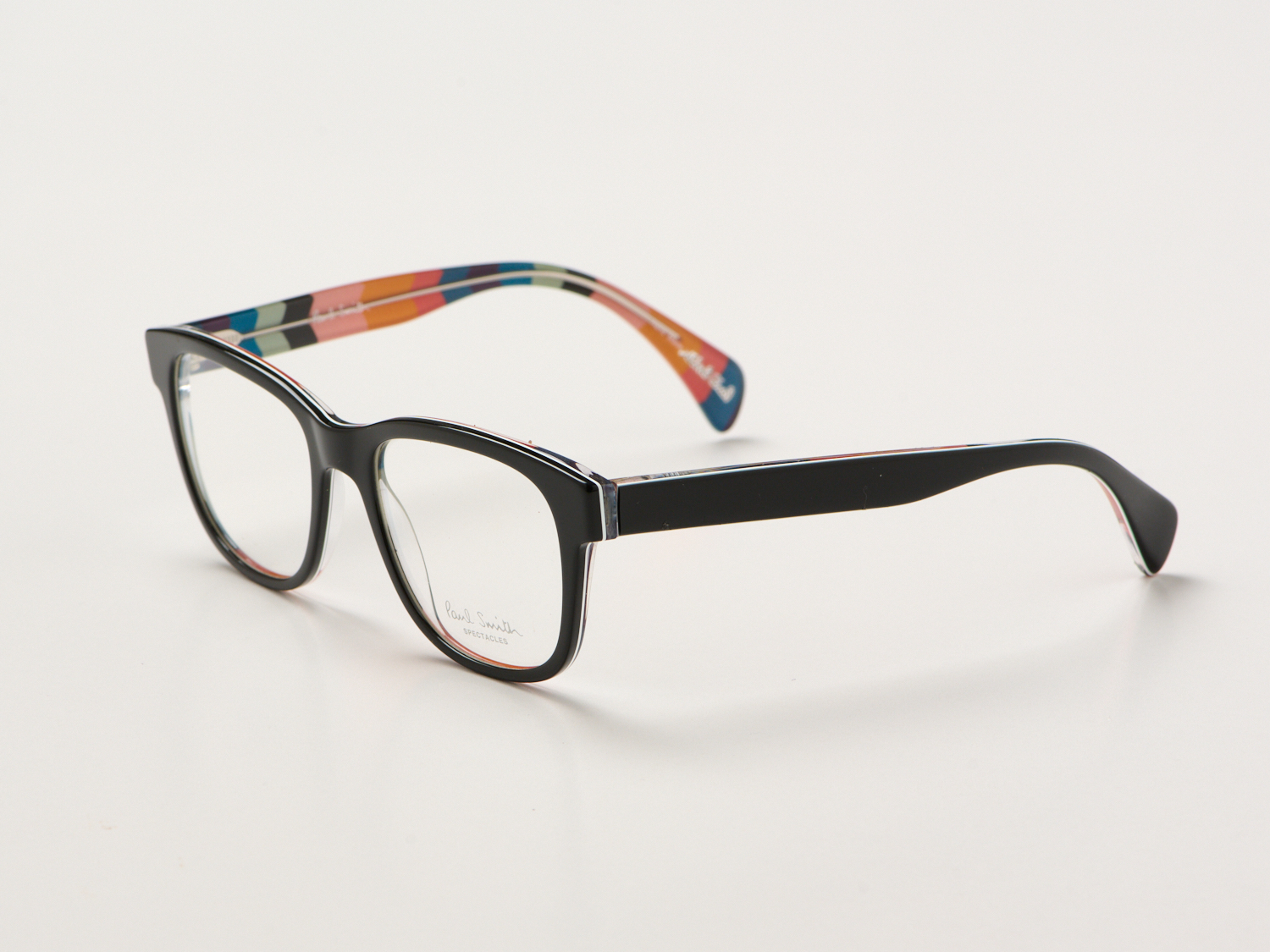 BRAND NEW OPTICAL FRAMES BY PAUL SMITH - Styled in black composite with multicoloured reverse.