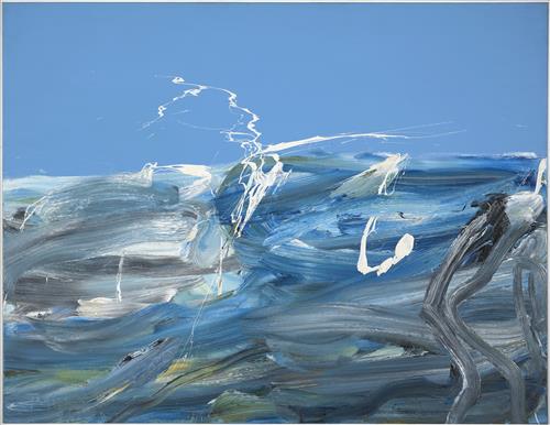 Work is in overall good condition. However, the canvas is loose. Marks and surface matter are seen along top edge, as the frame is recessed. Framed size measuring 139 x 184cm.