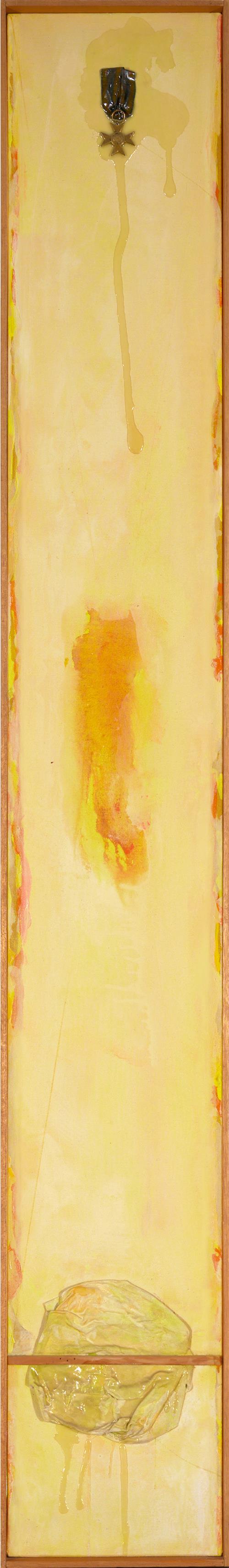"In late February, 1973 I began a series of tall, narrow works that came to a halt in May 1974. I imagine that I was influenced by the format of a Jules Olitski (Fourth Indomitable, c.255 x 28cm) that I bought for the Power Gallery of Contemporary Art in 1972, but it is clear that I was intent upon avoiding lateral pauses and intervals and in having the work register itself as instantly as possible, like a sign-post or single-minded totem pole"