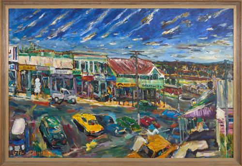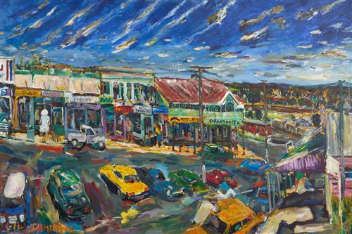 "In 'Grand Hotel' 1978 Gil Jamieson has chronicled the daily life of a country town such as his native Monto, in Queensland. It was Jamieson's spontaneous expressionist style that attracted support from such eminent patrons as John Reed, for Jamieson combined his expressive emotional style with genuine emotion and an 'innocent eye' which recorded his intimate knowledge and understanding of rural life." (edited excerpt, p. 61)