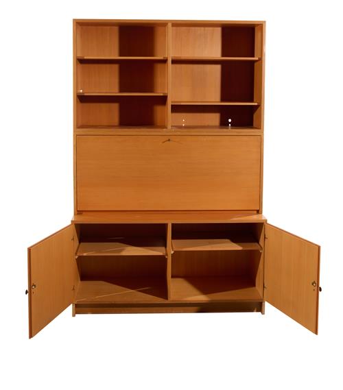 Adjustable shelving and original key. Pine veneer with brass features & fittings