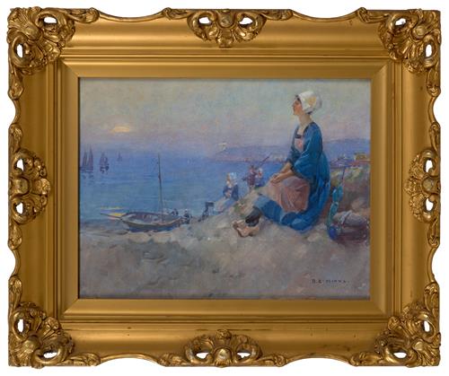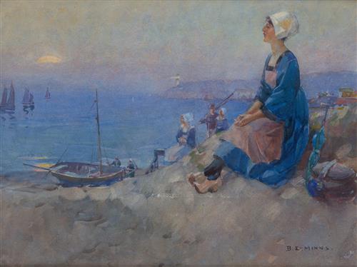 In the current offerings, scenes of Australian pastoral life (W. B. McInnes), famous European and English bridges and buildings (Will Ashton's Paris and Sydney Long's Houses of Parliament), and beach excursions (Robert Johnson and B. E. Minns) stand out. The American, Audley Dean Nichols (1875-1941) became famous for his hazy images of the wild west tamed. His Arizona 1927 is representative of the 'Purple Mountain School', an American equivalent to the Australian pastoral idyll.