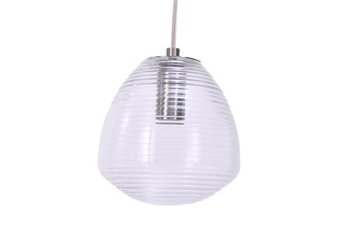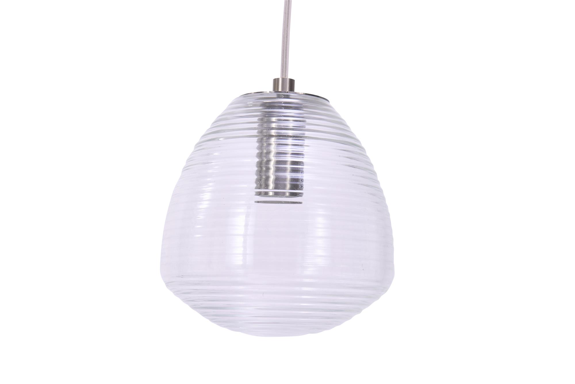 Transparent blown glass, grey painted and satin finish nickel metal.