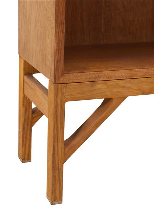 Teak veneer with interchangable shelves. Please note these are not the original shelves for the unit.