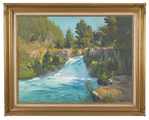 Work bears minor imperfections and losses to the paint seen across the surface (only visible when inspecting close-up). An area of the canvas appears to have lifted from the board, present in the top centre edge of the work. Framed with overall size 105 x 130cm