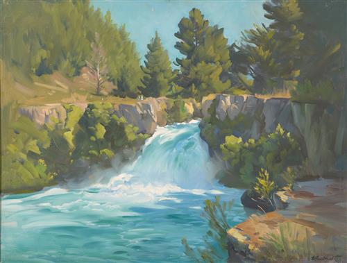 CLARICE BECKETT (1887-1935) Studley Park Footbridge c.1924 oil on board