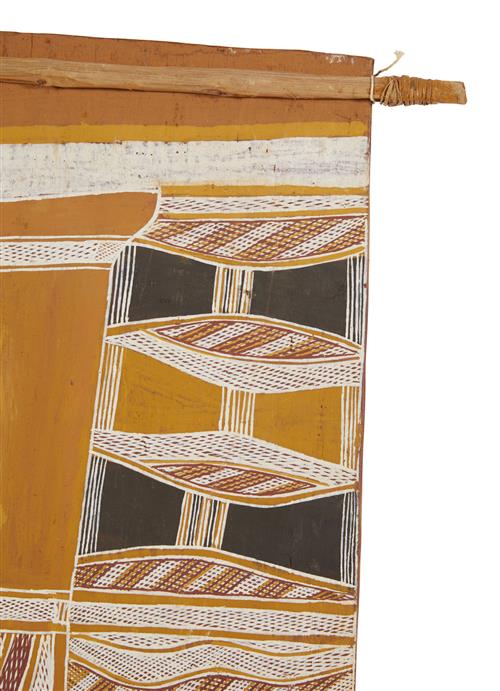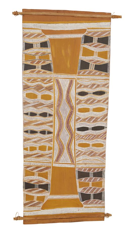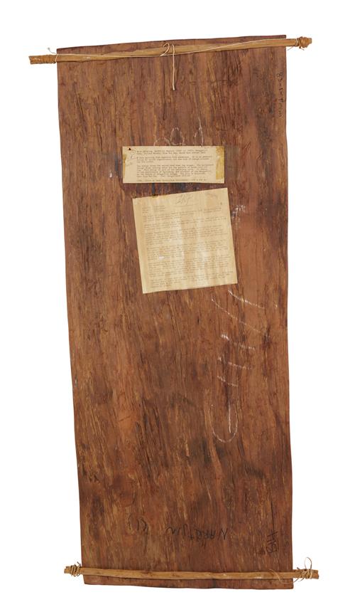 THOMPSON NGANJMIRRA (born 1954) Namarrkon, The Lightning Spirit 1989 natural earth pigments on eucalyptus bark