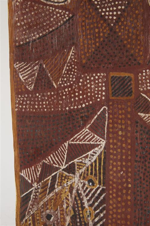 THOMPSON NGANJMIRRA (born 1954) Namarrkon, The Lightning Spirit 1989 natural earth pigments on eucalyptus bark