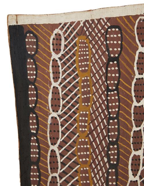 THOMPSON NGANJMIRRA (born 1954) Namarrkon, The Lightning Spirit 1989 natural earth pigments on eucalyptus bark