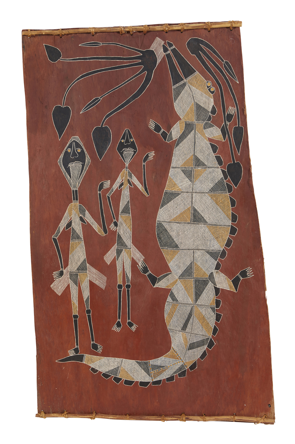 THOMPSON NGANJMIRRA (born 1954) Namarrkon, The Lightning Spirit 1989 natural earth pigments on eucalyptus bark