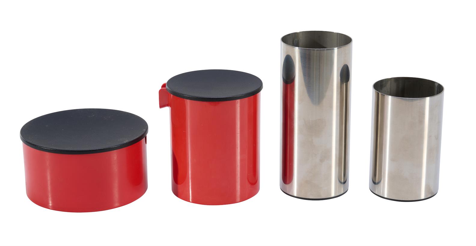 Minor surface scratching consistent with the age and some previous use present to all of the devices. Some very minor fading in colour to the two red plastic containers. There is some remnants of sugar and other material in the sugar containers. The stainless steel containers have some grime and marks to the inside. No dints, chips, cracks or losses and overall all the devices are in very good condition.