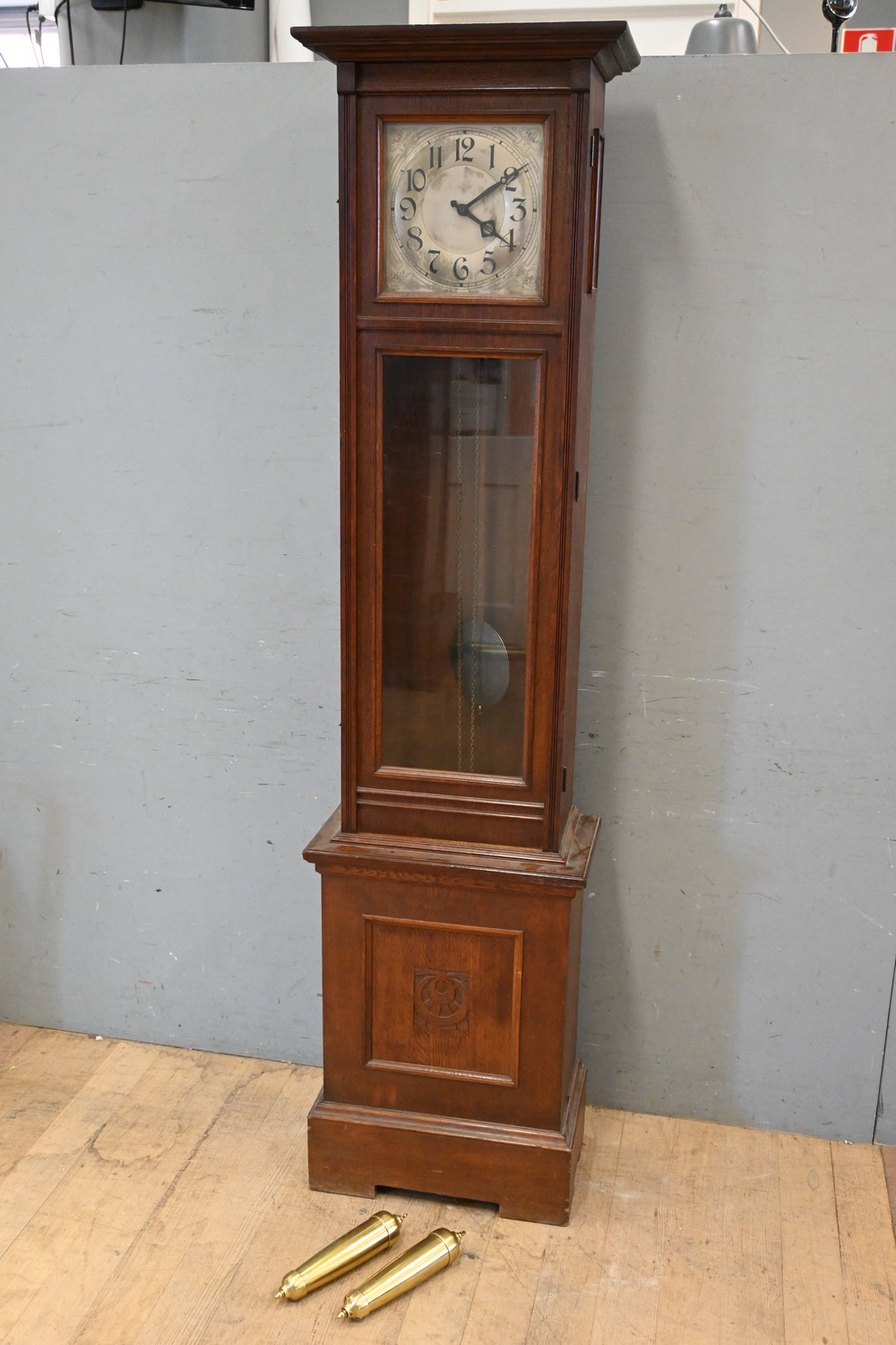 A 1930's LONG CASE GERMAN STRIKE CLOCK (A/F) (209H X 52W X 30D CM) (LEONARD JOEL DELIVERY SIZE: X-LARGE)