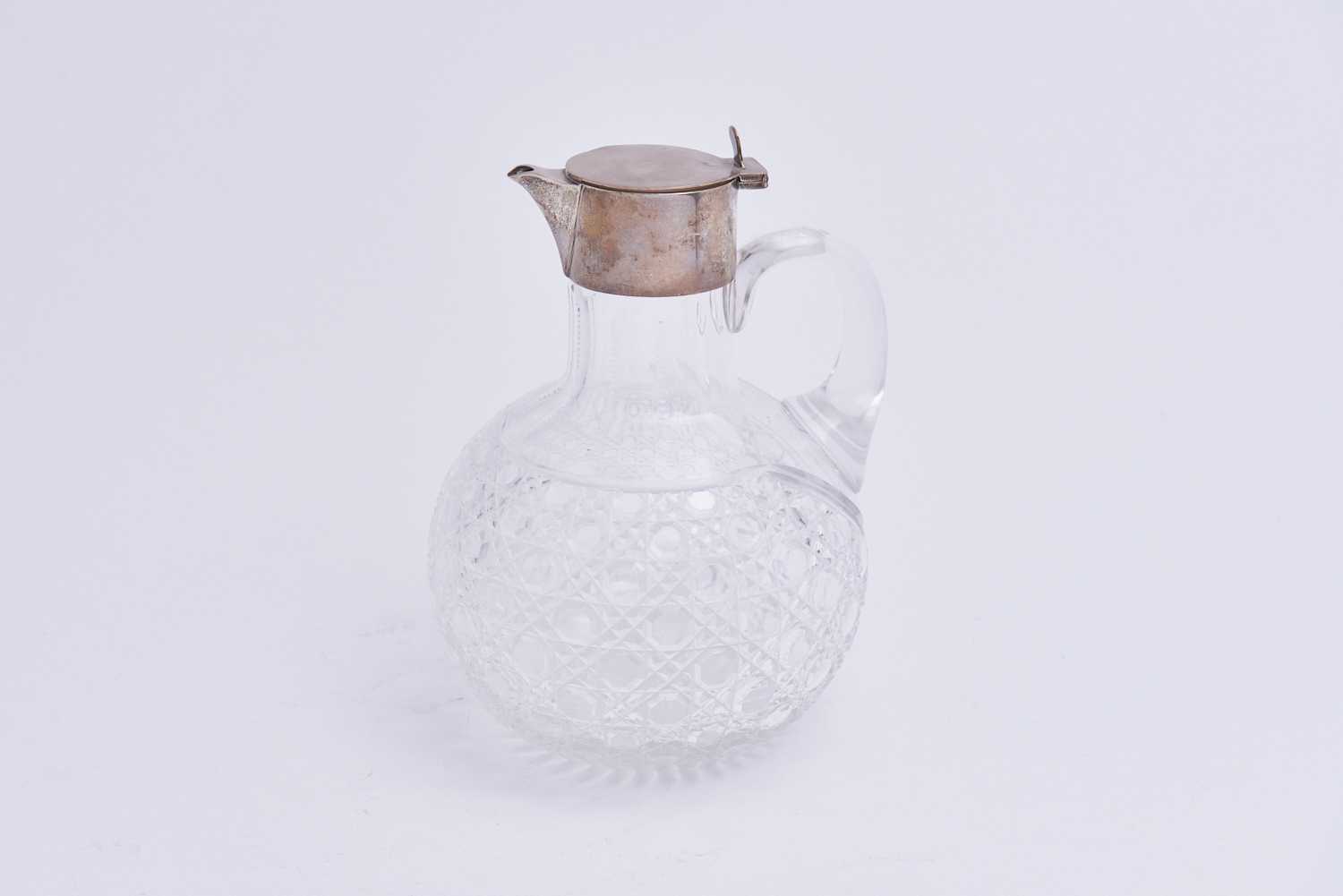 A STERLING SILVER TOPPED CRYSTAL CLARET JUG, HALLMARKED FOR LONDON 1896, WILLIAM HUTTON AND SONS LTD H.18.5CM, LEONARD JOEL LOCAL DELIVERY: SMALL