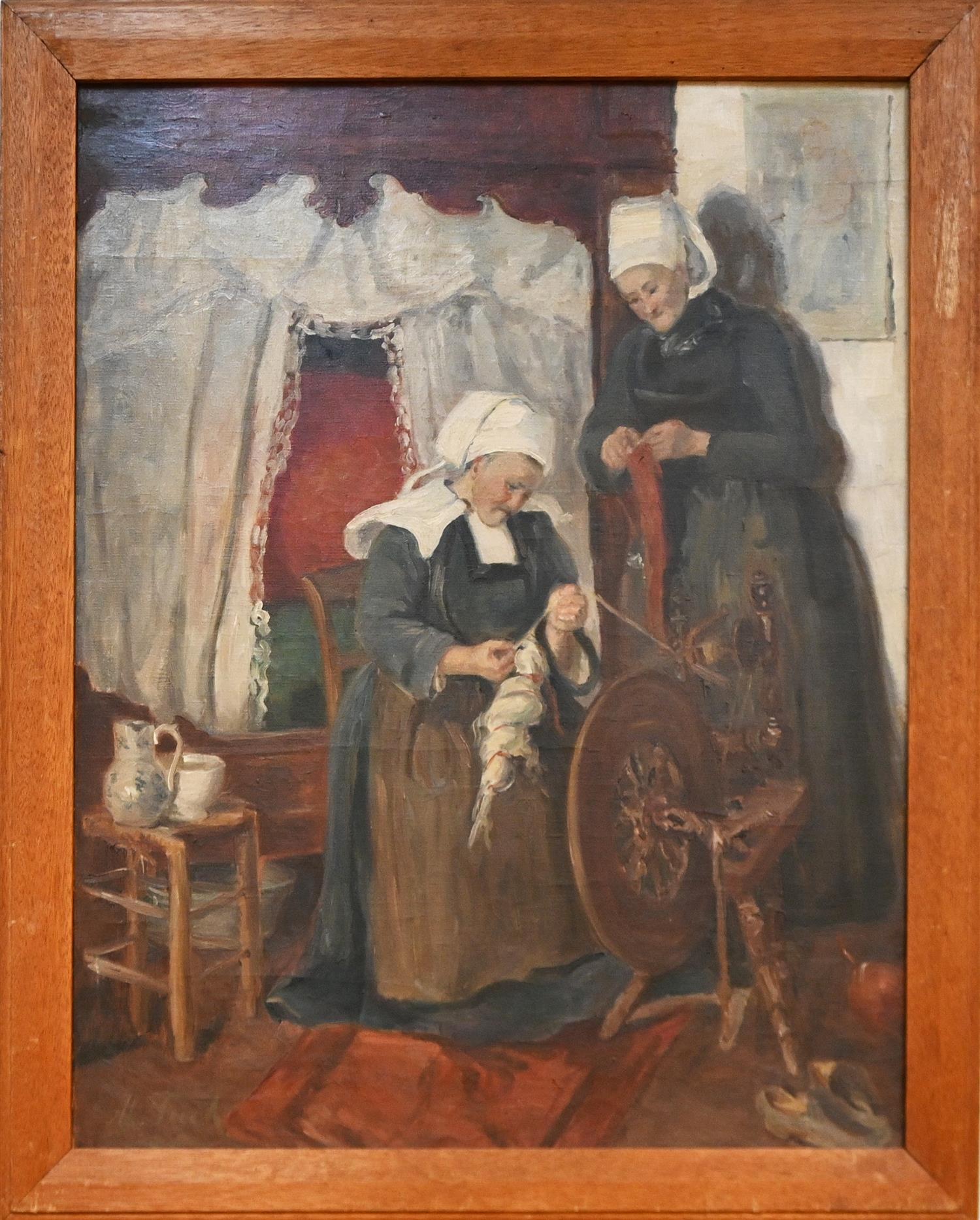 In overall good condition. Light cracking upper right quadrant, and a minor abbrassion lower left side. This painting could benefit from a professional surface clean. Framed, overall size 90 x 78cm.