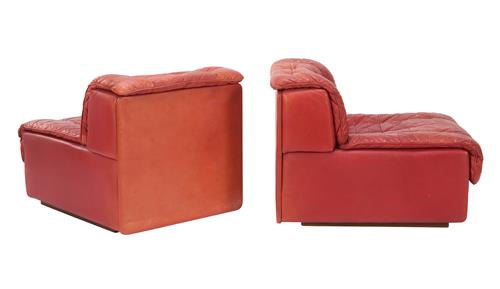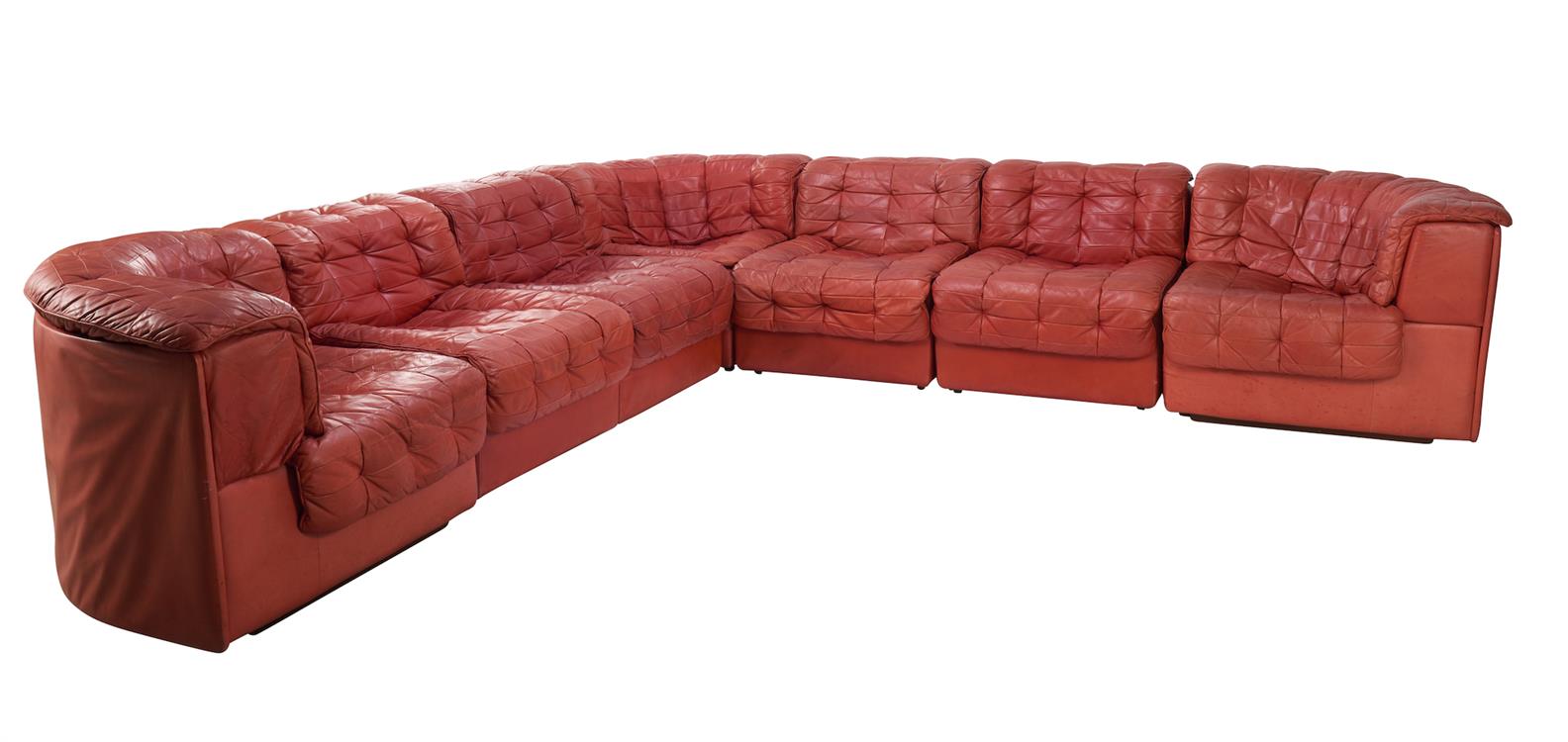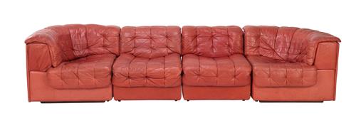 Marks, stains, and surface scratches present to the leather consistent with the age and previous use of the setting. Sun fading and discolouration to the leather to various degrees on each module. Scuffs and abrasions to the leather on each module. The leather shows clear signs of aging and use. There are no major rips or losses however, and each module is structurally sound. The setting would benefit from a good clean and some care to the leather. Very comfortable setting and overall in fair condition.