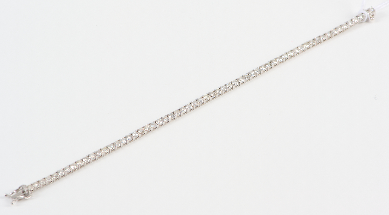 A DIAMOND SET BRACELET IN 14CT GOLD, COMPRISING SEVENTEEN CLUSTER OF CLAW-SET FANCY-CUT DIAMONDS TOGETHER WEIGHING 7.23 CARATS, CENT...