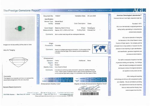 Accompanied by an AGL report, numbered 1108347, dated 25 June 2020, stating that the 2.18 carat emerald is of Colombia origin.