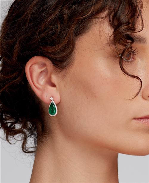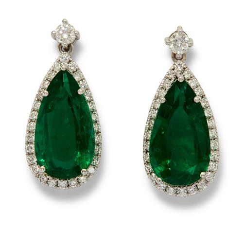 EMERALD AND DIAMOND PENDANT EARRINGS