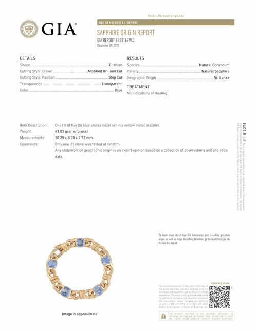 Accompanied by a GIA report numbered 6223167940, dated 9 December 2021, stating that the one (1) randomly tested blue sapphire is natural, with no indications of heating, of Sri Lanka origin.