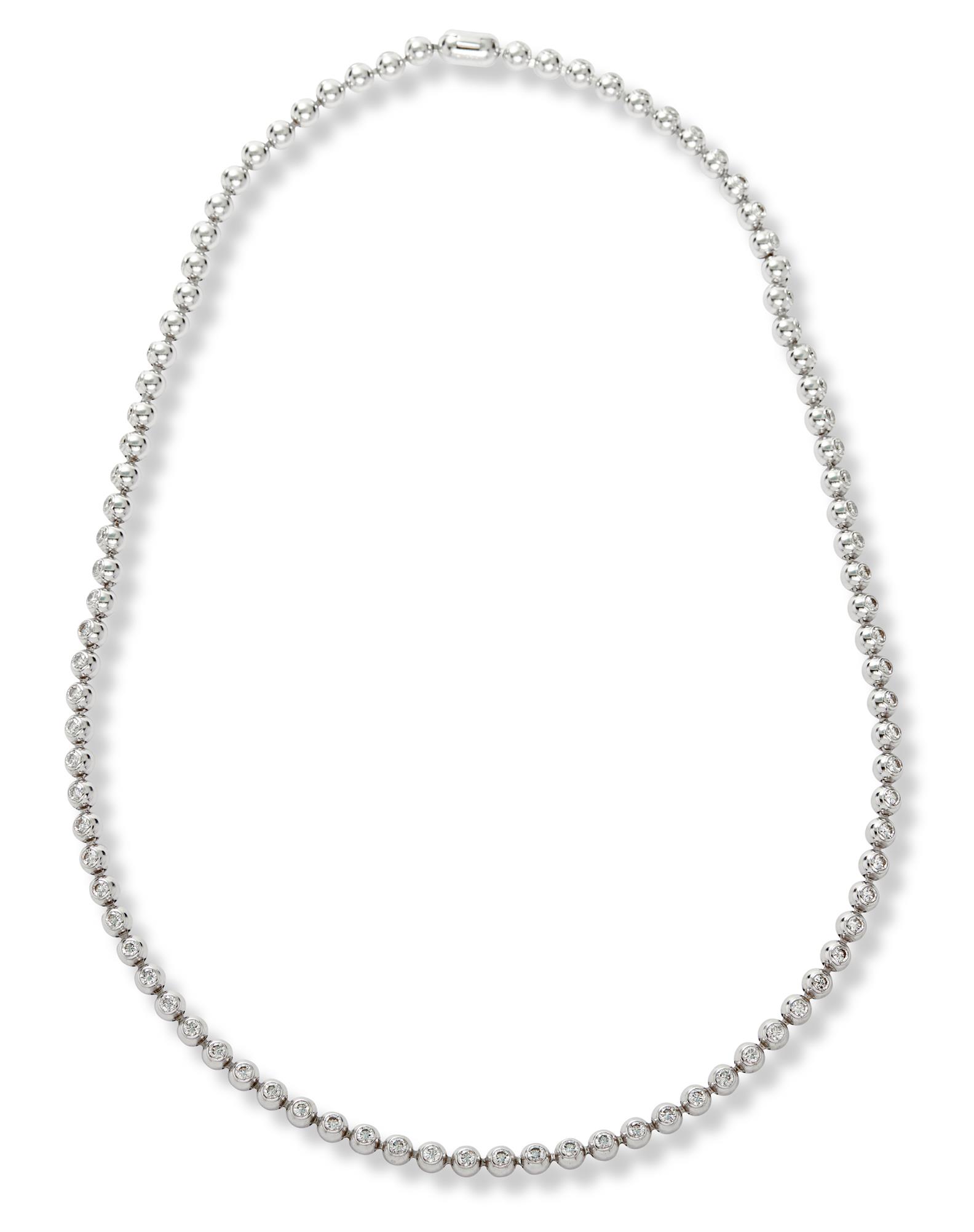 Composed of a line of articulated spheres embellished with brilliant-cut diamonds completed by a barrel clasp, the diamonds together weighing approximately 4.00 carats, mounted in 18ct white gold, length approximately 415mm, gross weight approximately 43.96 grams, numbered, workshop marks, signed Cartier.