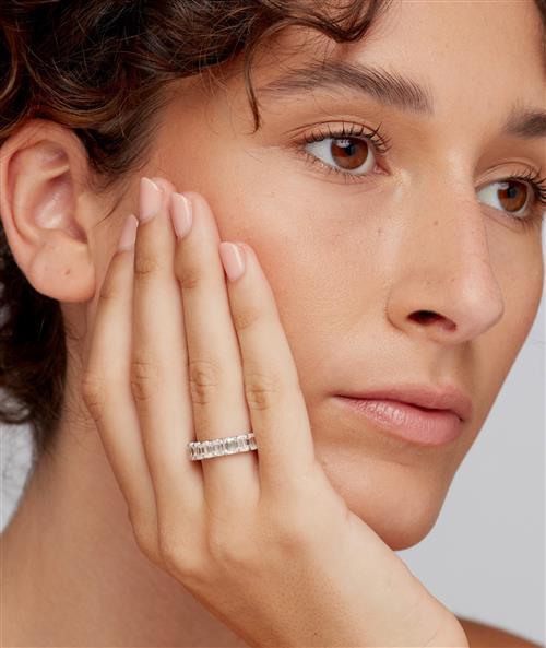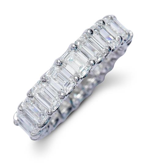 Designed as a continuous row of 20 claw-set emerald-cut diamonds together weighing 6.01 carats, mounted in 18ct white gold, size L1/2.