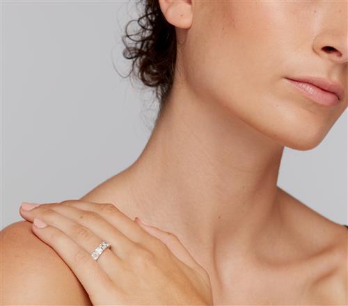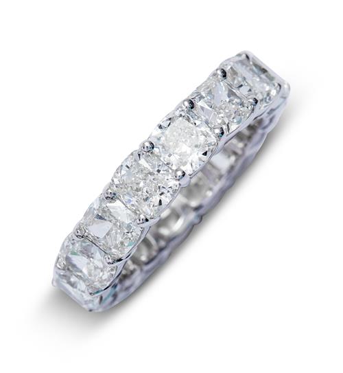 Designed as a continuous row of 16 claw-set cushion-cut diamonds together weighing 8.05 carats, mounted in 18ct white gold, size M.