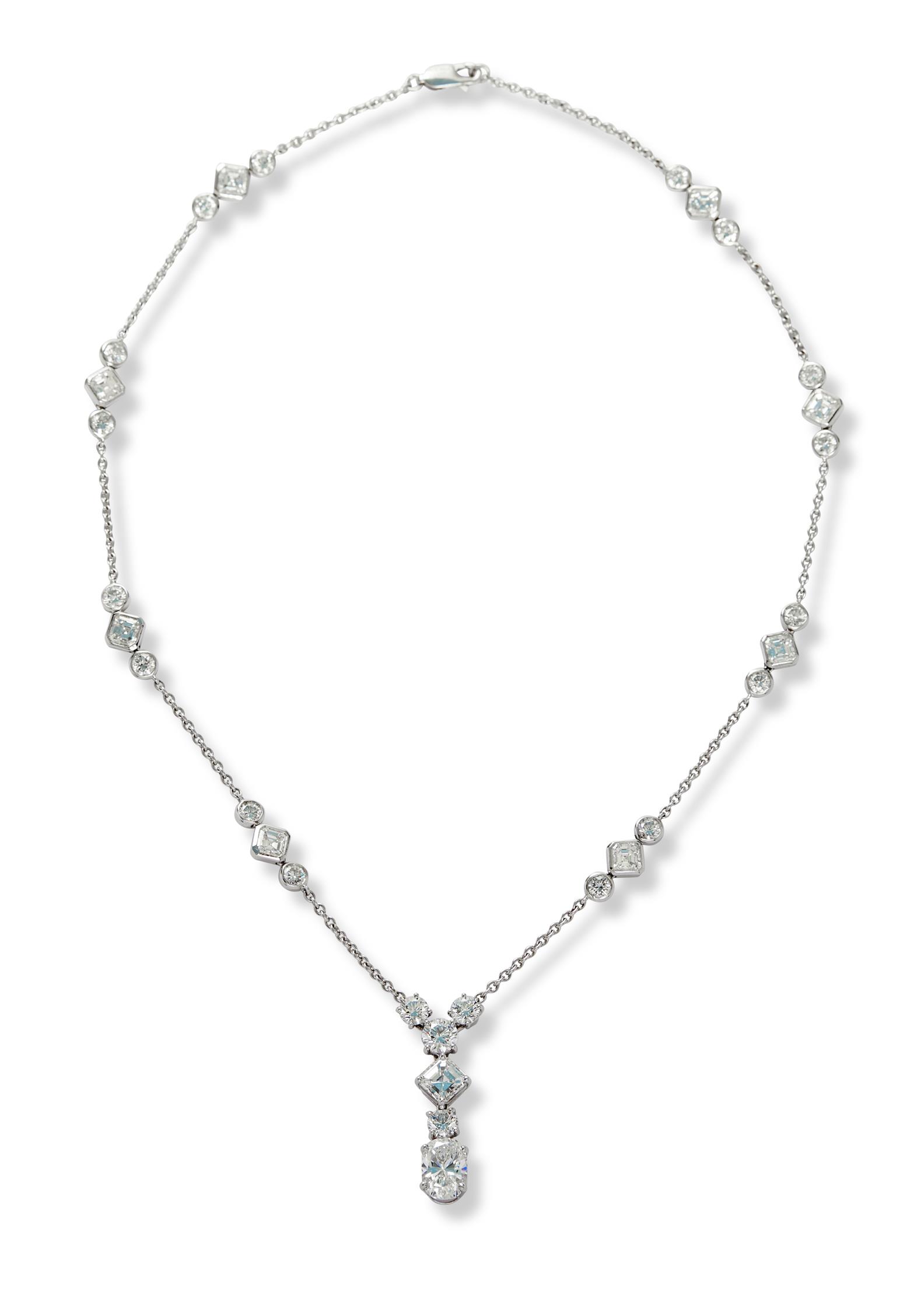 Terminating on a swing drop claw-set with an oval brilliant-cut diamond weighing 2.02 carats supported from a line of similarly set emerald and brilliant-cut diamonds completed by a trace chain necklace decorated at intervals with a series of collet-set emerald and brilliant-cut diamonds, the diamonds together weighing approximately 11.50 carats, mounted in platinum and 18ct white gold, inner circumference 400mm, numbered, signed Graff.