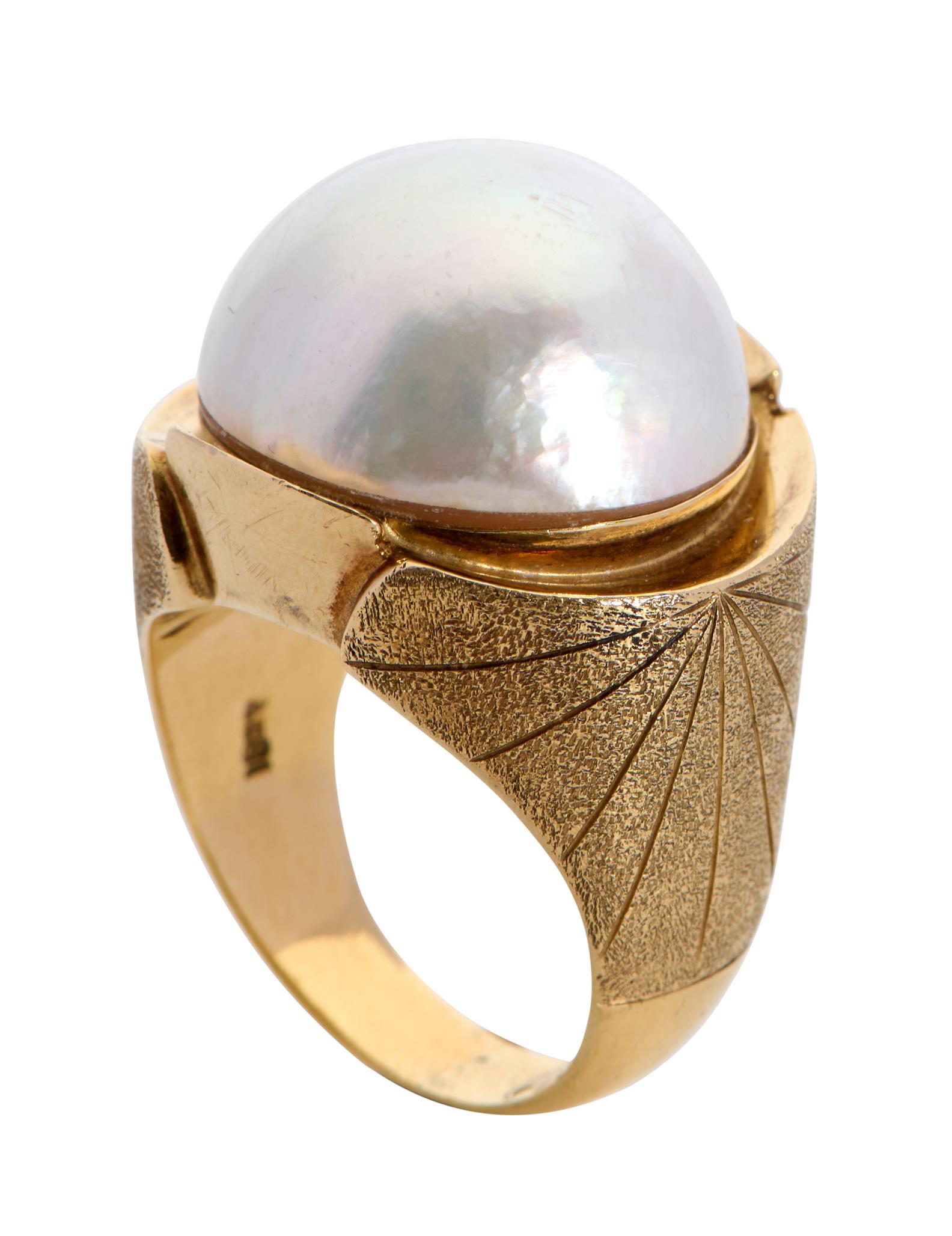 Centring a pearl of cream hues measuring 17.2mm within a textured surround, size P.