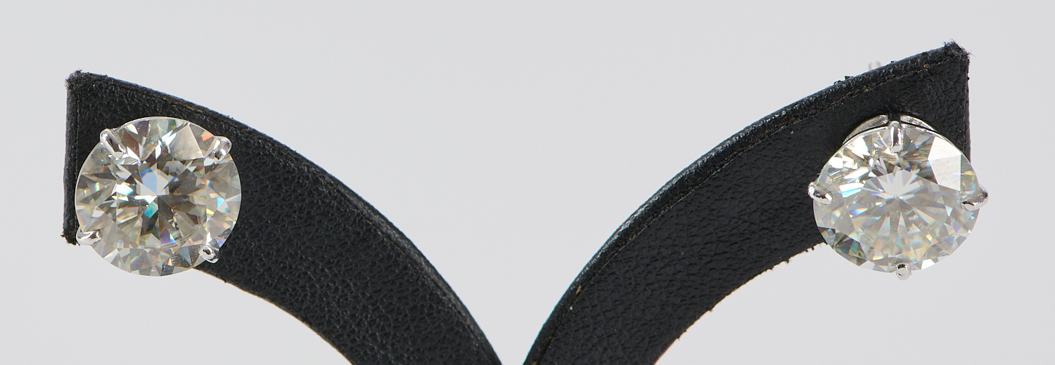 A PAIR OF DIAMOND EARRINGS IN 18CT WHITE GOLD, EACH EARRING COMPRISING A CLAW-SET OLD EUROPEAN-CUT DIAMOND WEIGHING APPROXIMATELY 0....